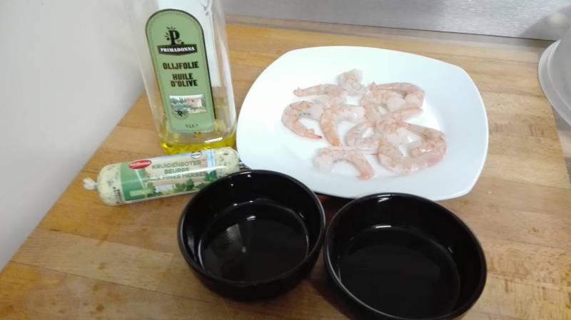 - Leg de ontdooide scampi's in een vuurvast schaaltje.